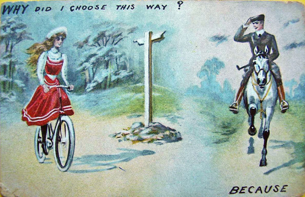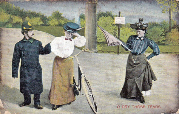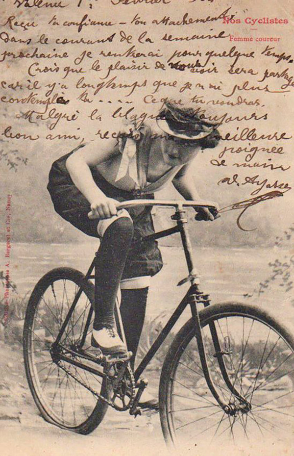 At the Online Bicycle Museum you can see hundreds of original bicycles that have been preserved from that time. But now you can also browse 100 photographs and postcards from the same era showing women proudly posing with their bicycles, as well as commercially produced cards making fun of them. Of course, as always, it’s free. I hope you enjoy stepping into a time gone by that shaped the world we live in now…